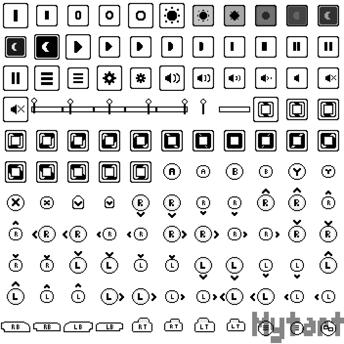 You’ll find controller buttons such as A, B, X, Y, triggers, bumpers, stick directions, D-Pad, and more — all created in a unique pixel aesthetic that is not based on any official controller design.